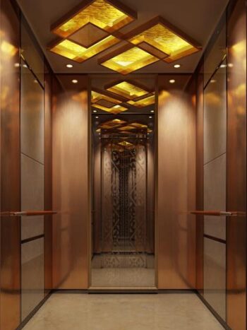 Este elevador de ascensor para pasajeros es un tipo de elevador de tracción Gearless con cabina de diseño estándar y sistema de accionamiento VVVF. La cabina del elevador está hecha con una hoja de acero inoxidable con placa de transmisión acrílica o lámina de acero pintada o acero inoxidable cepillado.