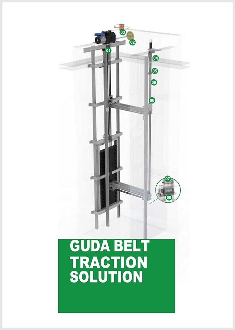- Equipo de tracción: Máquina sellada sin engranajes y motor de imanes permanentes.