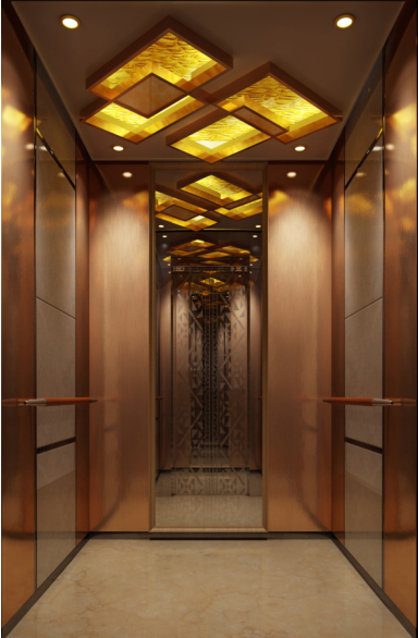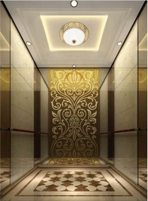 Este elevador de ascensor para pasajeros es un tipo de elevador de tracción con cabina de diseño estándar y sistema de accionamiento VVVF. La cabina del elevador está hecha con una hoja de acero inoxidable con placa de transmisión acrílica o lámina de acero pintada o acero inoxidable cepillado. El piso está hecho con PVC antidesgaste de alta calidad.